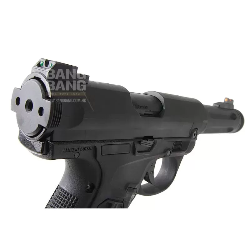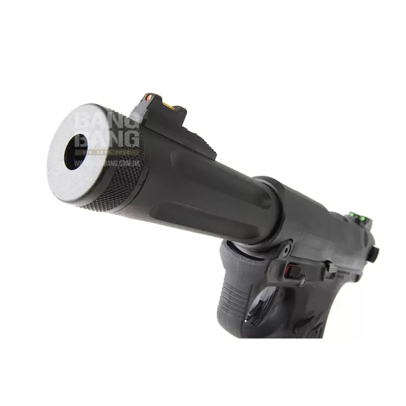 Internally the pistol functions like many other similar 'striker fired' pistols and has an adjustable hop up. Do make sure you take your time to adjust your hop up as out of the box the hop is non adjusted, which sometimes causes the chambered BB to fall out of the barrel. With addition of a threaded outer barrel, you can mount suppressors and other compensators with the compatible threads.
