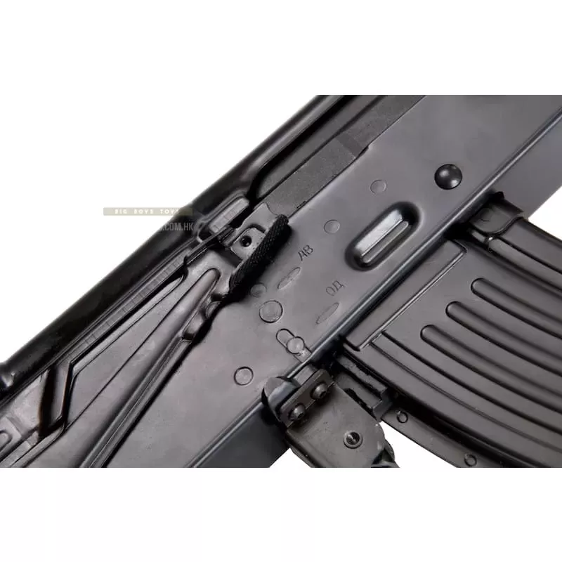 The GHK AKMS mimics the same simplistic and effective design in a very solid product. The distinctive folding Stock on the GHK AKMS is a double locking arm and not a single locking arm adding secure rigidity to the rifle in any situation. The back shoulder rest is foldable as well to give you a low profile when the folding stock is stowed. The overall operation of the stock is tough, and was made to be used.