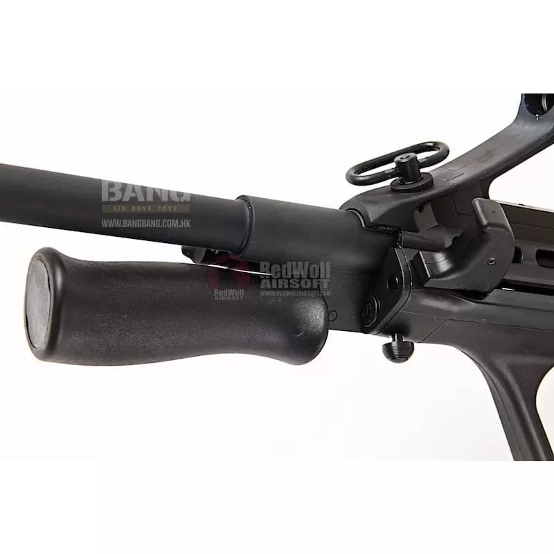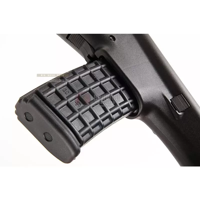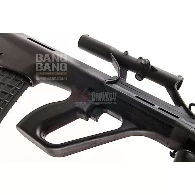 GHK did say they are releasing 3 versions of the AUG. The traditional A1, the flat top A2 and the quad railed A3 and that raised a few eyebrows. This A1 isn't heavy, but has a very solid build and feels so much better than all its AEG counterparts with a sturdy polymer body with a slightly grainy texture that is not going to scratch anytime soon. Now apart from the charging handle, grip and magazine, everything else in front is made out of metal. Apart from the sling points in front of the scope and on the left side of the stock, nothing rattles, not even the 30 round magazine which look exactly like the AUG mag should look like. The build is impressive.