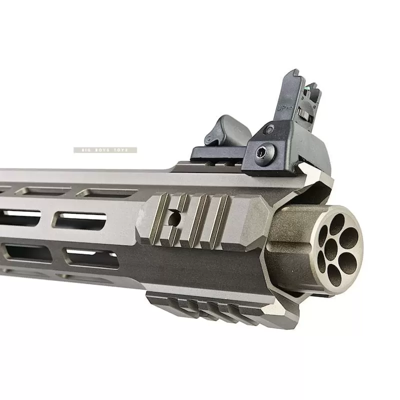 • Short M-Lok Rail with Blast Shield Muzzle Device.