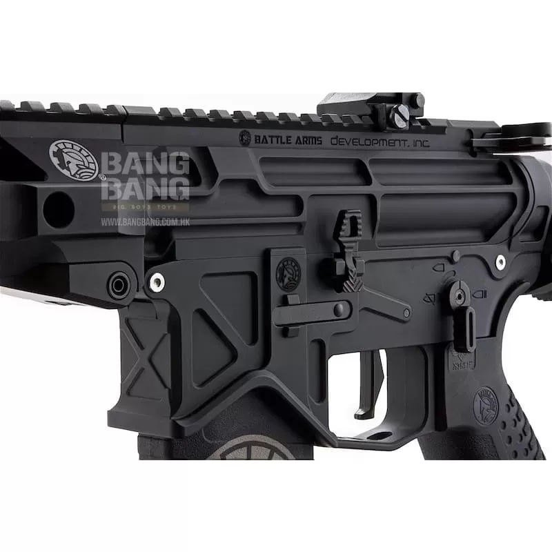 The RWA B.A.D. AEG is a project long in the making and features excellence both internally and externally. Fully licensed by cutting-edge firearm and accessories manufacturers Battle Arms Development and Fortis MFG, the RWA B.A.D. AEG is truly a sight to behold. Featuring all of the flagship parts from both companies such as the upper and lower receiver, stock, and rail, this electric airsoft gun is not only sure to turn heads but replicates each part exactly down to the very dimensions seen on the real steel counterparts.
