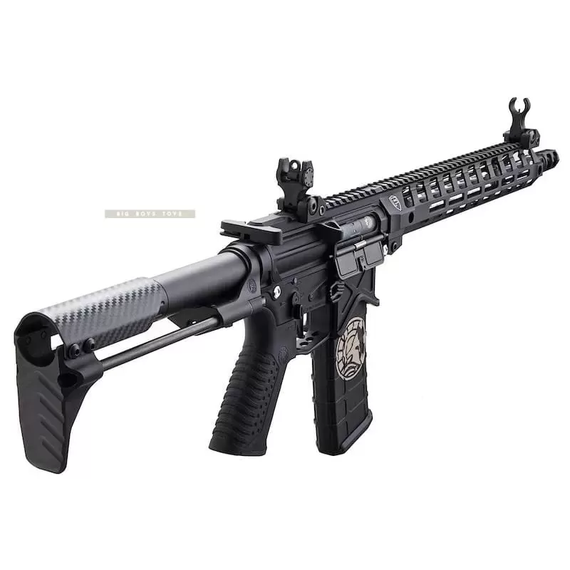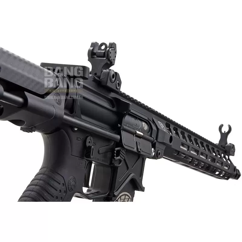 Externally, the B.A.D. AEG is an AR15 patterned rifle and features Battle Arms Development's flagship LW or Lightweight upper and lower receiver. This receiver is not only highly stylized for the sake of style, but is crafted in a way that is ideal for weight saving. As seen on the previous gas blowback version, each line and cut is carefully crafted to be 1:1 with the real steel version. This level of accuracy is translated to the controls as well. All the control surfaces such as the magazine release, bolt release, and selector are licensed by B.A.D. and compliments the rifle nicely. In addition, you will find the wildly loved B.A.D. VERT stock and a buffer tube extension plus remove butt pad for additional storage space. This is to ensure each user has the opportunity to maintain the sleek look of the rifle with still using Titan Batteries!
