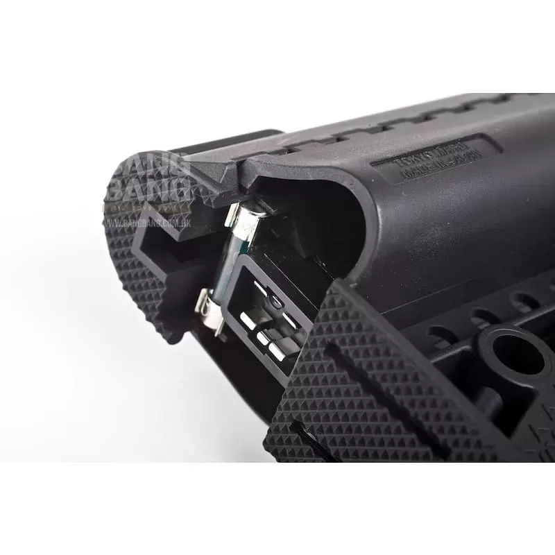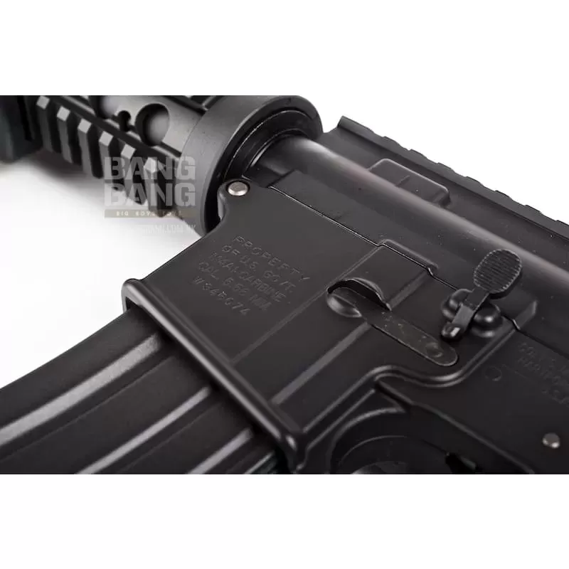 The innovative system from Tokyo Marui is adapted into this full metal M4 SOPMOD CQB-R, including blowback system and also a lock-bolt function which stops the gun from firing on the last round of BB fired (this feature only activated using standardTokyo Marui 82 round magazinespecifically designed for this new M4) just like the real gun and similar to the more expensive Systema PTW. Pop in a new fully loaded magazine, press on the bolt-release button on the side of the receiver and you are ready to fire again!