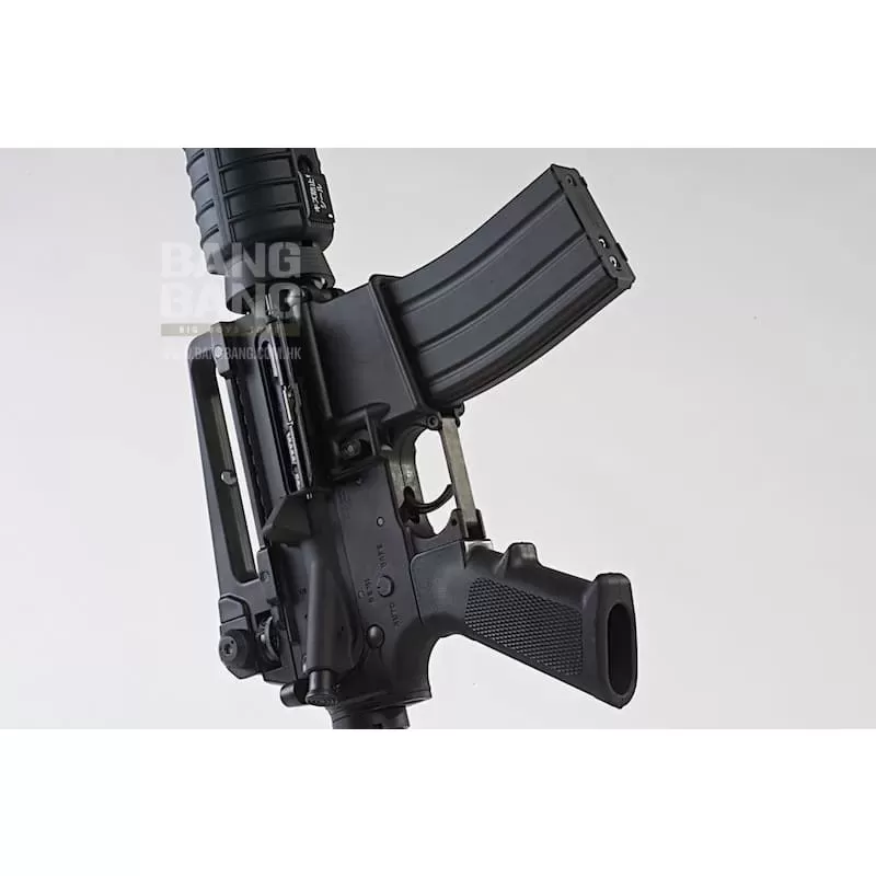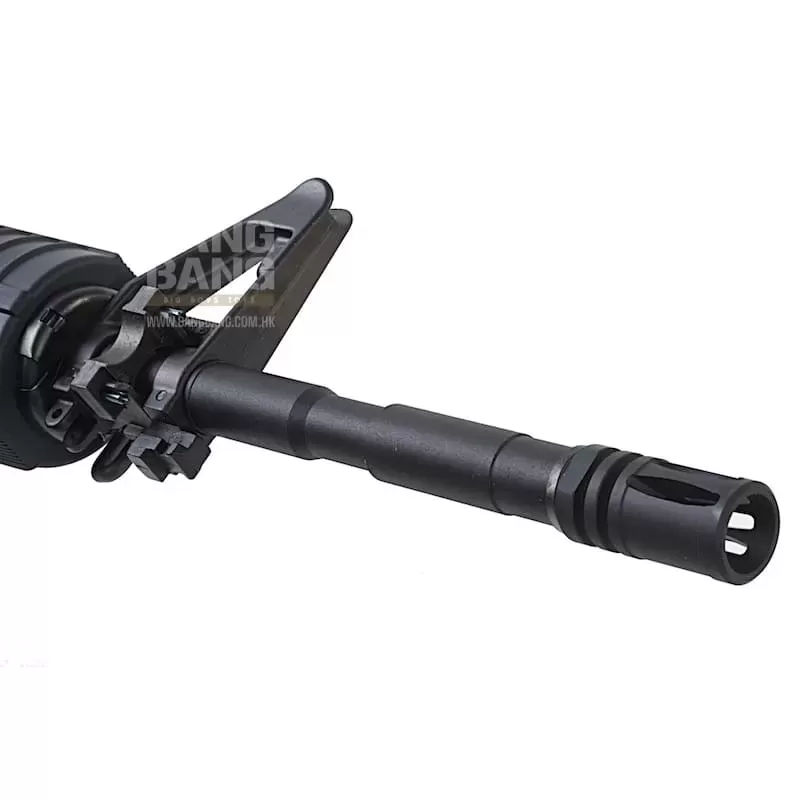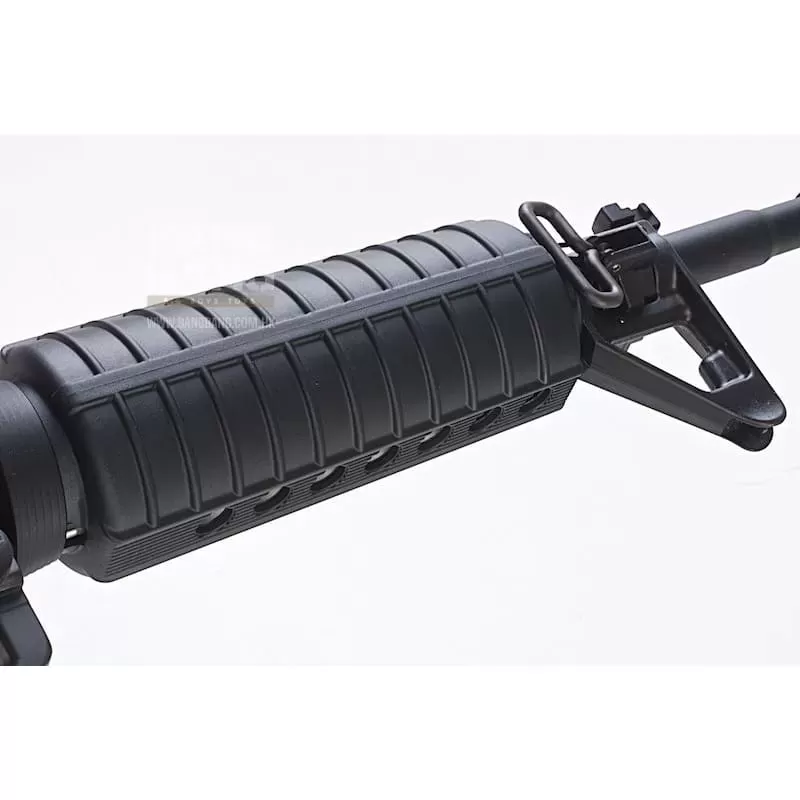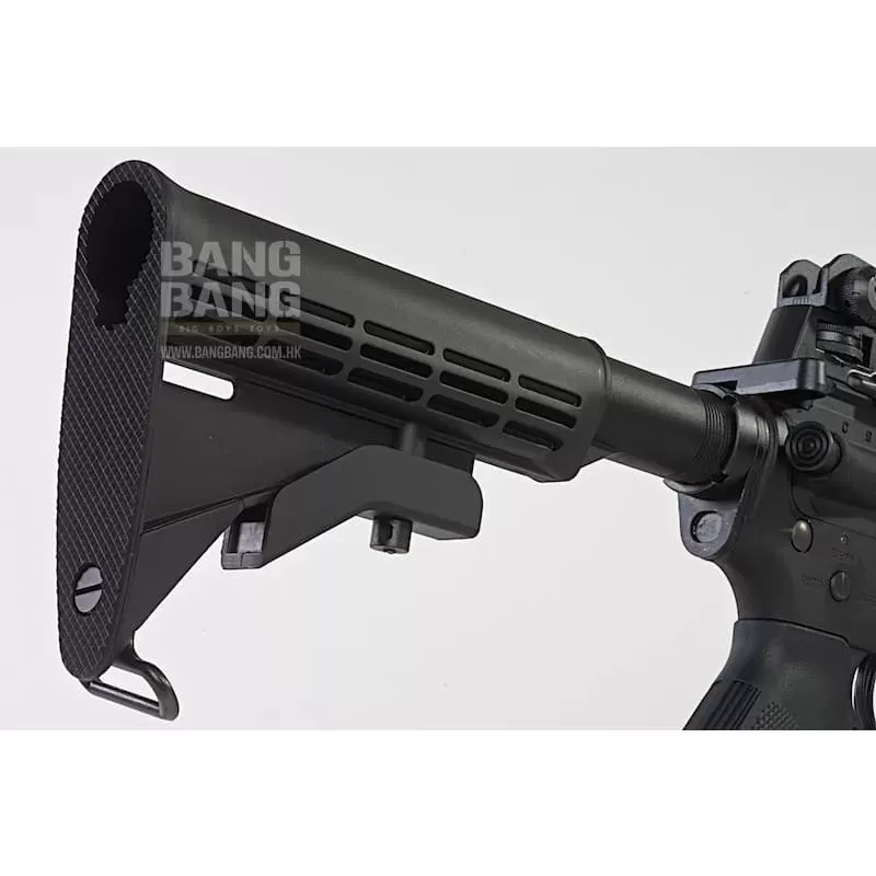 The Tokyo Marui M4 MWS GBBR is considered one of the best if not the best M4 GBBR you can purchase. The external finish of the rifle is top-notch as expected from a TM product and the styling is based on the initial M4 design sporting the iconic delta, triangle front sight, cylindrical headshield handguard, and carry handle.